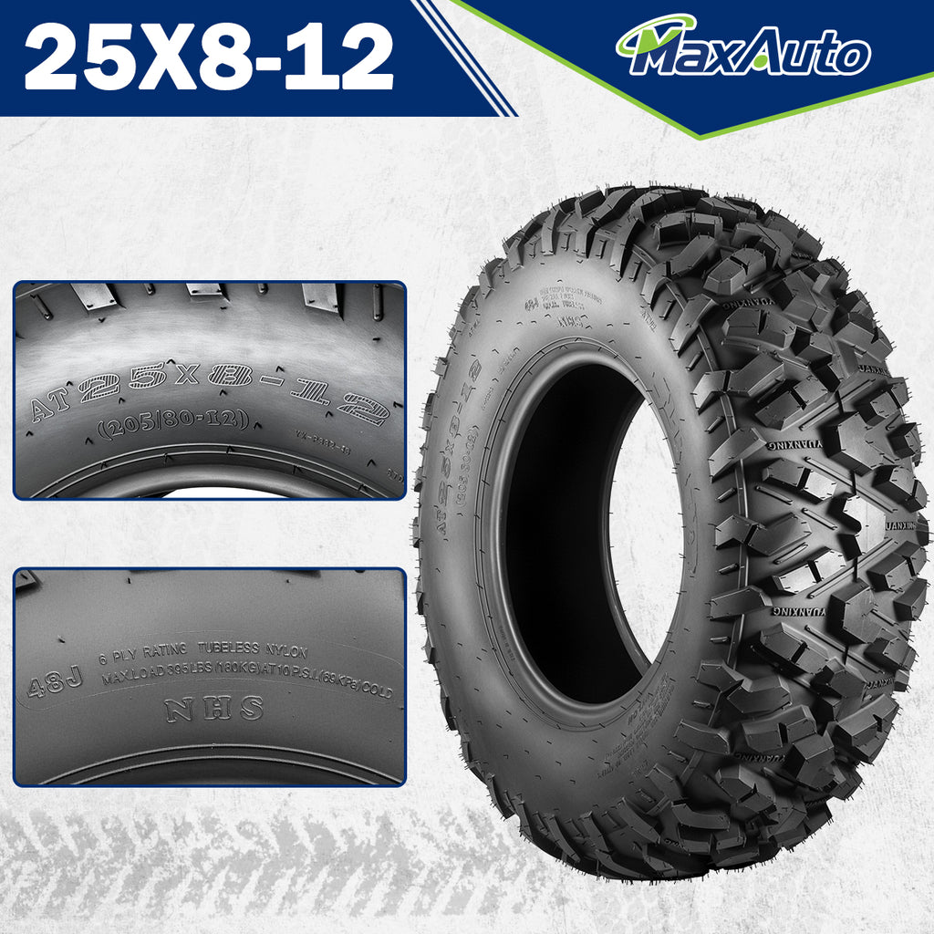 MaxAuto 25x8-12 ATV UTV Mud Sand Tires, 6 PR, Tubeless, Pack 2