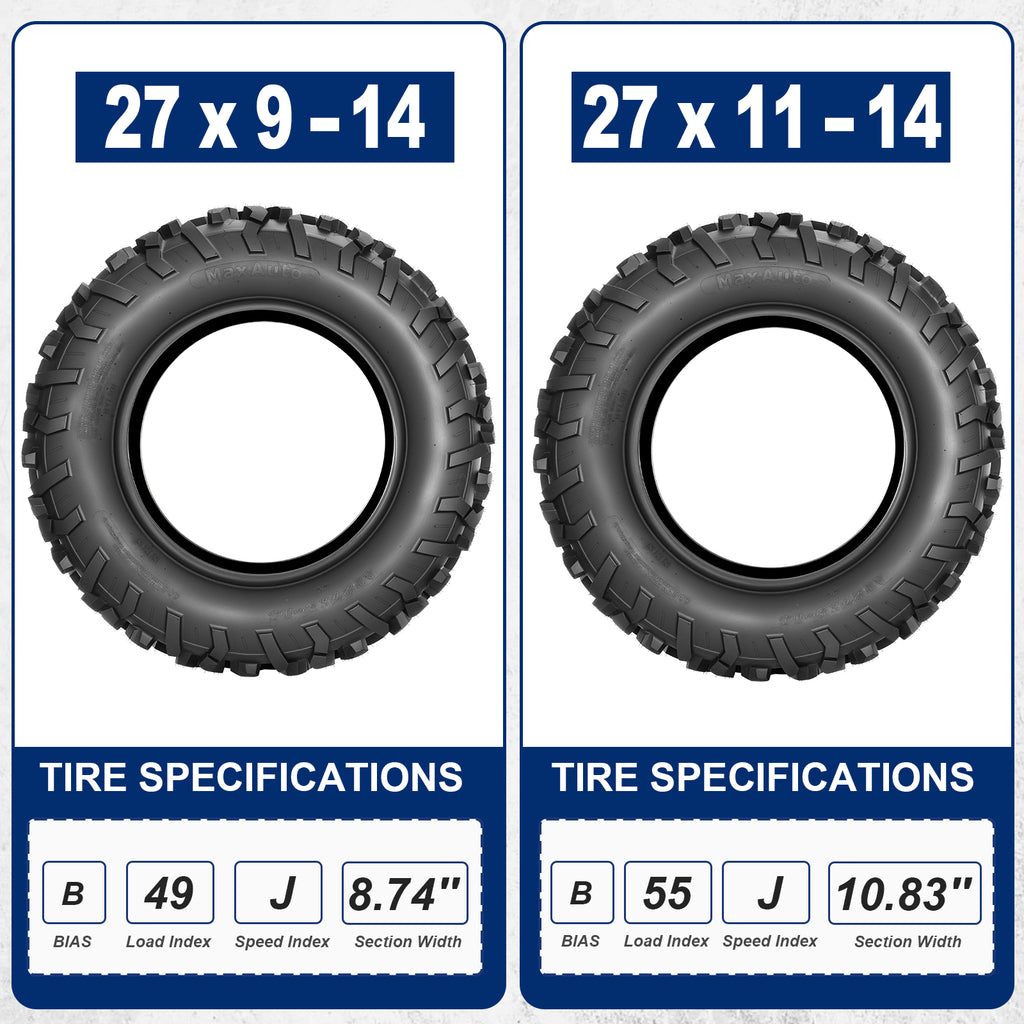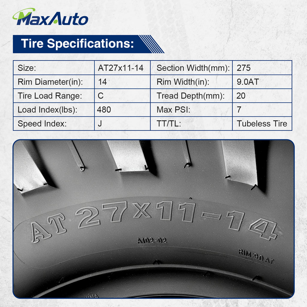 MaxAuto 27x9-14 Front & 27x11-14 Rear UTV ATV Tires,Set of 4